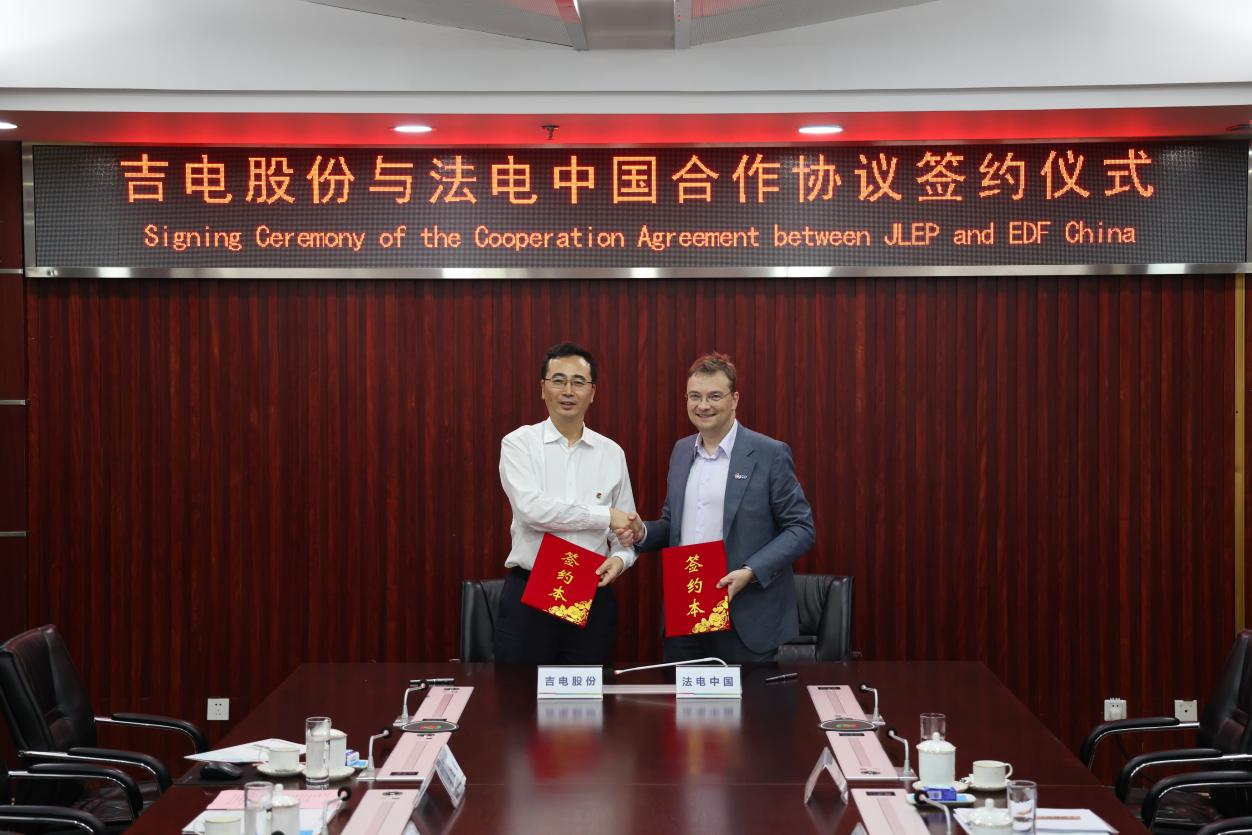 7月25日,吉电股份与EDF(中国)投资有限公司(简称“法电中国”)在长春市签署合作协议。公司党委书记、董事长杨玉峰,法电集团副总裁、法电中国总裁尚为邻出席签约仪式并代表双方签字。
