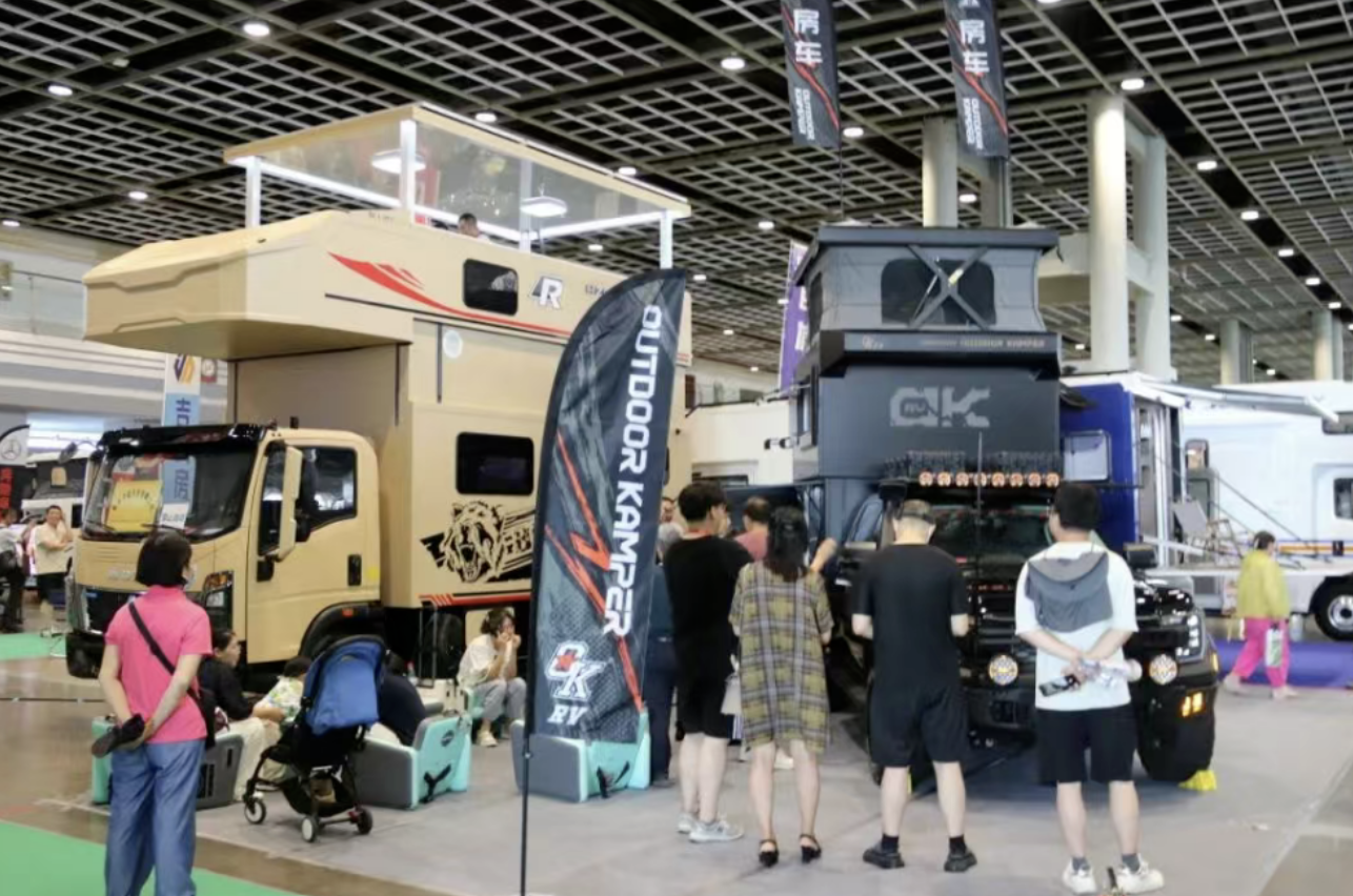 所以,除日展+夜市外,在室外广场近60辆房车夜宿,360度呈现房车一族出行与居住一体化的场景。