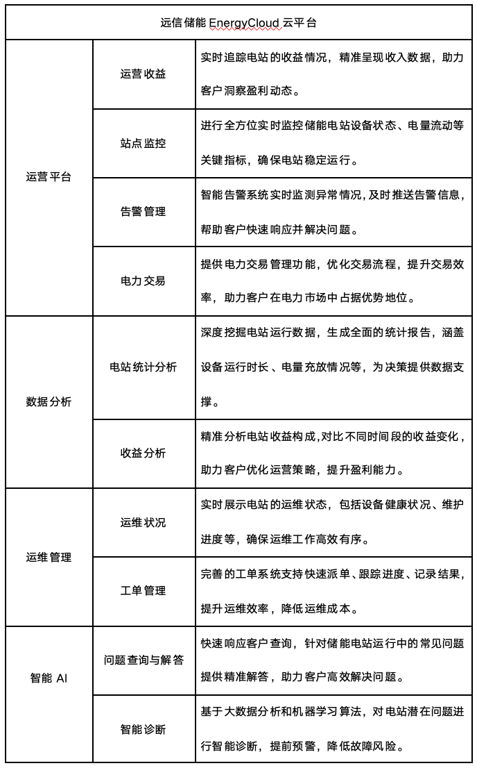 远信储能自研EnergyHub 能量管理系统与EnergyCloud 云平台,深度融合智能化与AI技术,精准匹配电力现货市场及智能交易策略需求,围绕集中化监控、电站运营、电站运维以及数据智能分析等核心领域,为客户创造显著价值。