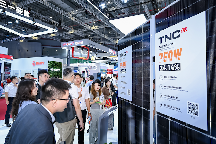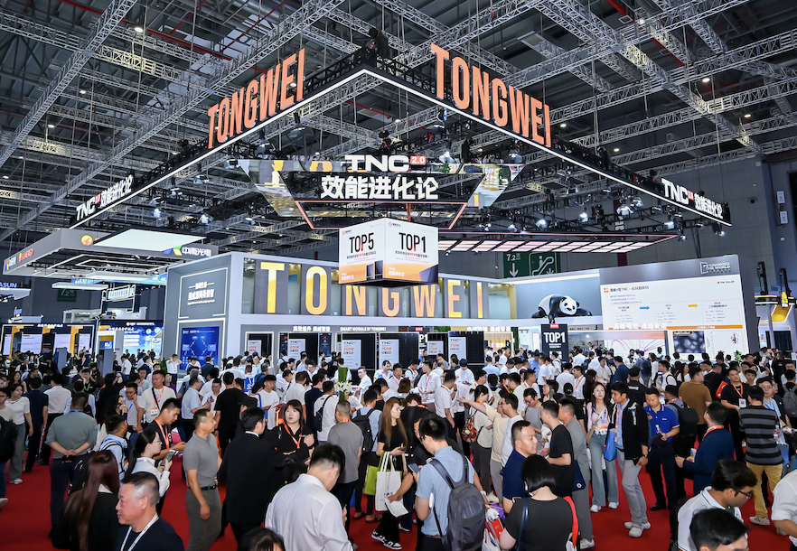 在本届SNEC展会上,N型技术仍然是主角。通威集团推出的TNC 2.0组件,采用N型TOPCon技术路线,集成908无主栅技术、TPE选择性发射极技术、Poly Tech多晶硅表面处理工艺等多种通威自主研发的核心技术,充分解锁了N型组件潜力,拓宽了组件效能边界,实现了组件效率、功率、双面率的同步提升。