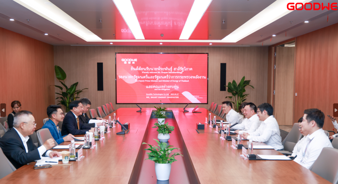 2025年5月27日,泰国副总理兼能源部长披拉攀先生率高层代表团一行到访固德威技术股份有限公司(以下简称“固德威”)苏州全球总部,此行是泰国推动清洁能源转型、深化对华产业合作的重要举措。访问中,双方围绕中国新能源科技发展成果以及深化中泰绿色能源合作展开深入探讨。