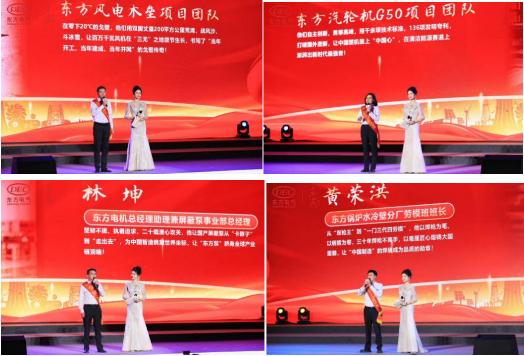 活动现场,“新时代东汽精神楷模”东方锅炉水冷壁分厂劳模班班长黄荣洪,东方电机总经理助理兼屏蔽泵事业部总经理林坤,东方汽轮机G50项目团队,东方风电木垒项目团队,先后通过故事短片、现场采访、故事讲述分享了他们弘扬东汽精神、紧跟时代步伐、投身企业发展的先进事迹。