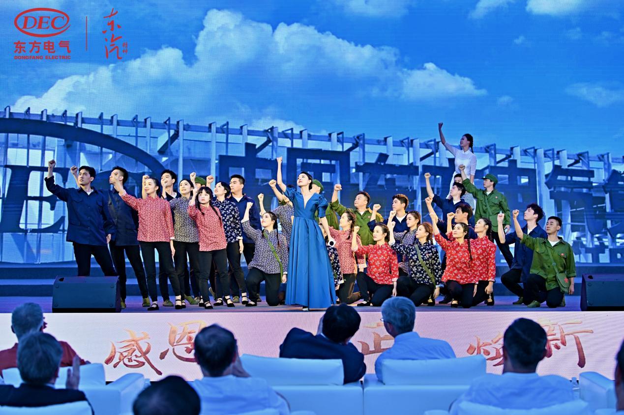 情景展演《脊梁之上》艺术地再现了东方电气从艰苦卓绝的三线创业,到经历磨难后的涅槃重生,再到新时代勇攀高峰、服务国家战略的壮丽画卷。