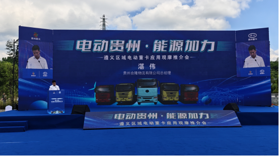 随后的推介环节中,遵义市播州区人民政府率先致辞,表达了对此次活动的支持以及对电动重卡推广应用的期待。贵州省能源局等相关部门领导也纷纷发言,强调了电动重卡推广对于能源领域和全省经济可持续发展的重要意义。