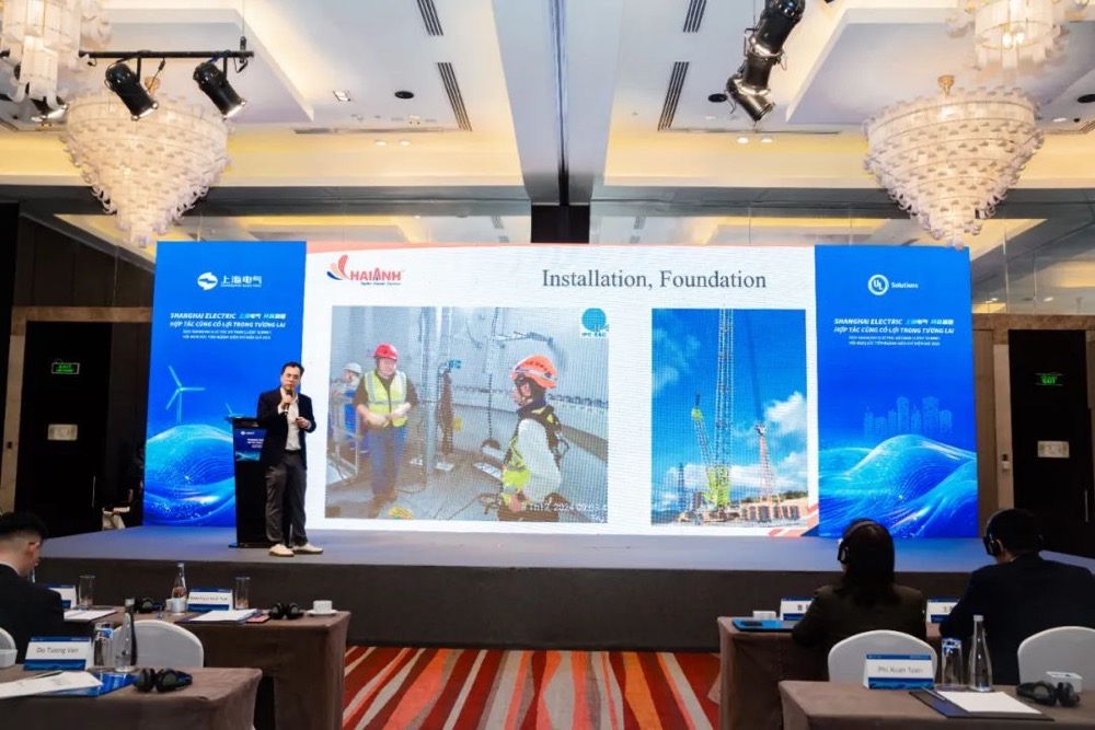 电气风电海外解决方案总监曹静介绍了上海电气集团及电气风电的相关业务和发展历程,同时针对越南市场的气候和风速特点,分享了电气风电针对越南市场的风电定制化解决方案,可为本地客户提供从选址、安装到运维的一站式支持。