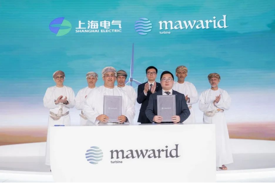 当地时间4月13日上午,在阿曼能矿部部长萨利姆·本·纳斯尔·阿乌菲、财政部长苏丹·本·萨利姆·阿勒贾布西、阿曼特别经济区与自由区主席阿里·本·马苏德·阿勒苏迪奈博士、商业与投资促进部部长卡伊斯·本·穆罕默德·阿勒优素福和上海电气集团党委书记、董事长吴磊等共同见证下,上海电气与阿曼Mawarid集团签署风电项目供货框架协议、技术授权、本地化工厂设计等一揽子合作协议。