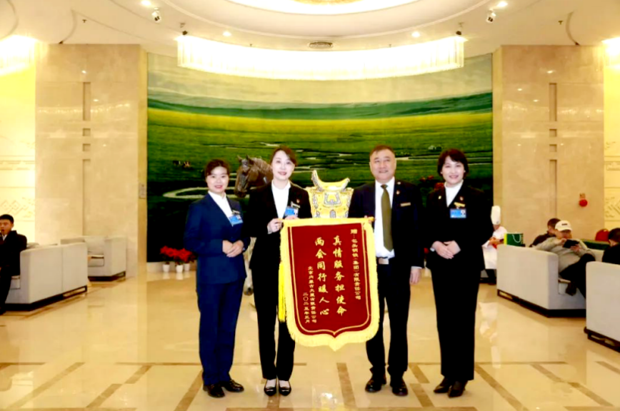 在全部服务保障工作结束后,十四届全国人大三次会议北京内蒙古大厦驻地为“铁花服务组”颁发了印有“真情服务担使命 两会同行暖人心”的锦旗,并向服务人员颁发荣誉证书。下一步,铁花文化产业公司将认真做好复盘总结,将“细致、精致、极致”的服务理念贯穿经营管理各环节,以更高标准、更严要求全面完成各项目标任务。