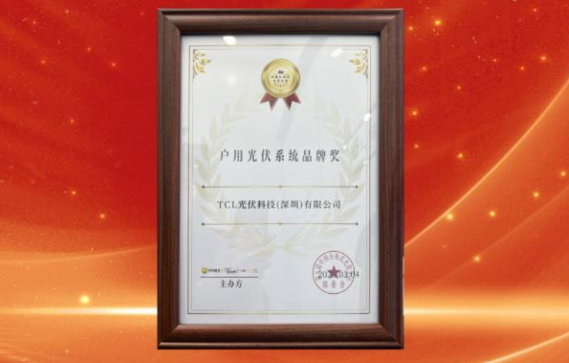 同时期,备受瞩目的第八届中国分布式光伏大会隆重启幕,作为国内分布式光伏与工商业储能领域的权威盛会,TCL光伏科技凭借顶尖的行业创新力、优异的市场表现力、大国品牌力斩获“户用光伏系统品牌奖”“工商业光伏投资商年度之星”两项大奖。