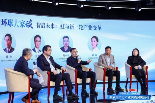 嘉宾们围绕“AI如何深度驱动新质生产力发展、引领新一轮产业变革”的主题展开热烈讨论。他们认为,AI技术在各个行业的广泛应用将引发生产方式、商业模式和产业结构的深刻变革。在制造业领域,AI将实现智能化生产和精准控制,提高生产效率和产品质量;在医疗领域,AI将辅助疾病诊断和药物研发,提升医疗服务水平;在服务业领域,AI将推动智能客服、智能物流等创新应用的发展,改善用户体验。