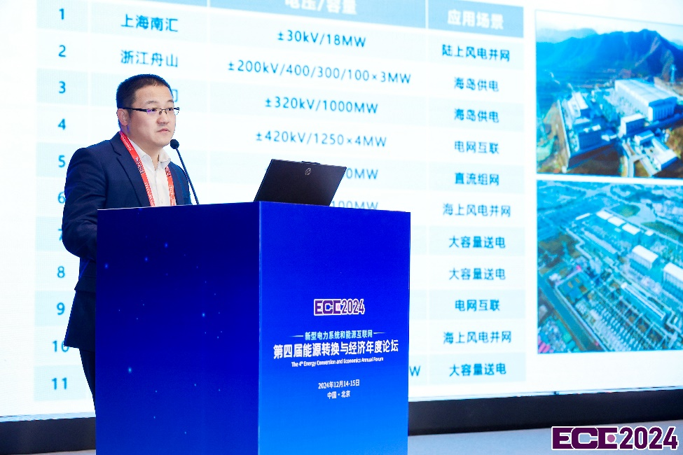 国网经研院直流中心主任李明分享了关于《构网型直流技术研究现状及发展方向》的主旨报告,提出面对孤岛/弱系统和电网“空心化”等问题,直流构网化将是未来重要的发展方向。柔性直流输电技术有功和无功解耦控制,系统适应性好,但是工程造价高、器件过流能力弱,需要开展常规直流与柔性技术相结合、柔性直流与储能技术相结合的研发,来实现未来直流构网技术的全面提升。
