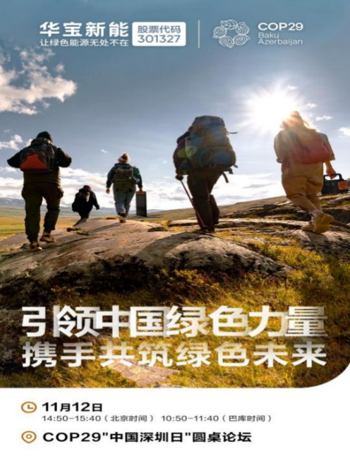 作为中国绿色能源企业杰出代表,华宝新能受邀出席本次COP29,并将亮相于“中国深圳日”边会,分享其在绿色能源领域的前瞻性探索和可持续发展理念,为全球低碳转型提供创新性“中国方案”样板;与各方共同探索绿色发展创新模式,为未来全球低碳发展贡献力量。