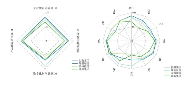 总体来看,碳足迹管理与实践表现存在明显的行业差异性。其中,光伏企业平均得分为76.43分,位居行业第二,最高分为协鑫集团的81.54分。中国光伏企业在碳足迹管理方面已经具备了一定基础,特别是在全产业链布局和技术创新方面取得了显著进展,但在面对国际市场的严格要求时,特别是供应链碳足迹核算和经验积累方面,仍然任重道远。