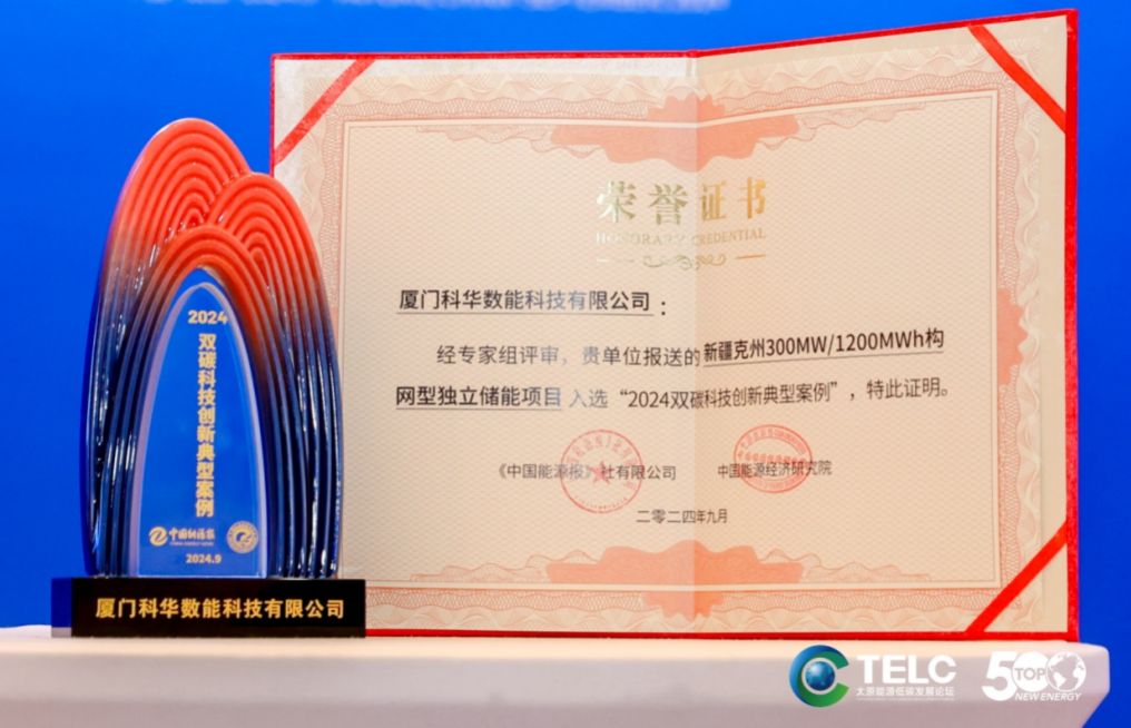科华数能报送的“新疆克州300MW/1200MWh构网型独立储能项目”成功入选 “2024双碳科技典型案例”。这是继“中核紫云200MW/400MWh独立共享储能电站项目”之后,科华数能再次获得此项殊荣。