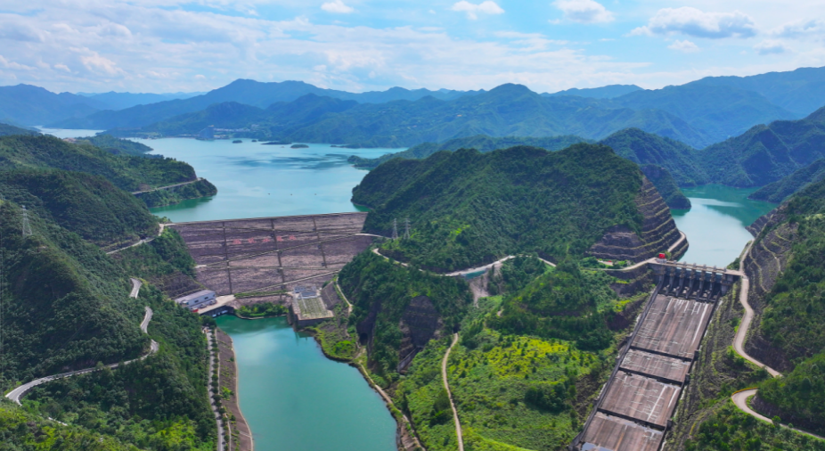 在千峡湖碧波中,滩坑水电站提供着源源不断的清洁电。 张文/摄