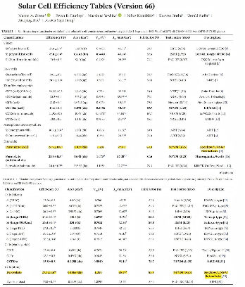 《太阳能电池效率表》(第66版)部分截图