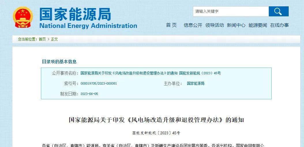 该《通知》与2023年国家能源局颁布的《风电场改造升级和退役管理办法》互为支撑,为黑龙江省老旧风电场改造升级和退役管理指明了方向。
