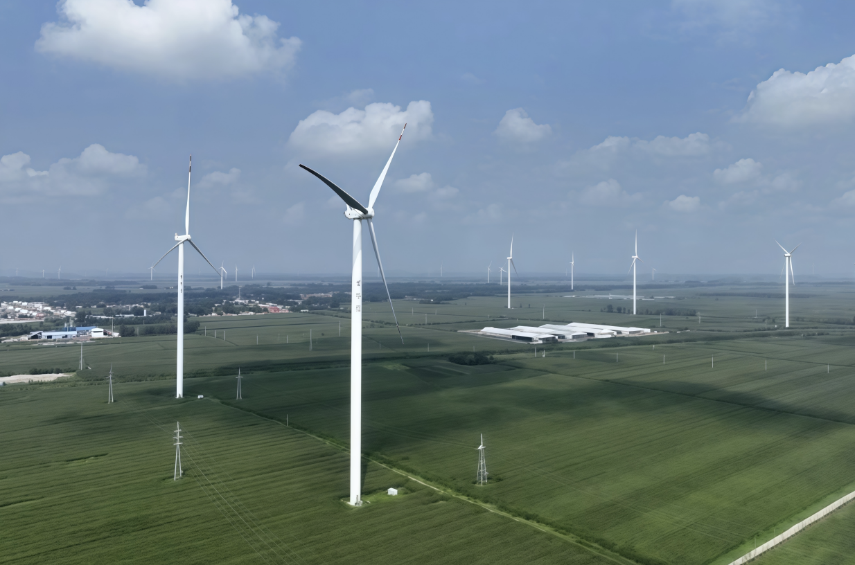 2024年8月21日拍摄的河北省衡水市故城县三朗镇韩庄村附近的风电场(无人机照片)。新华社记者 杨世尧 摄