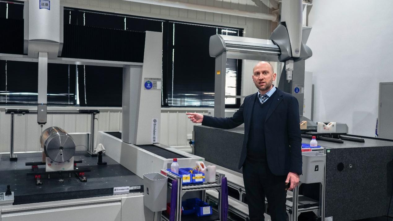 Ümit Mermertaş向记者介绍滑轴检测过程