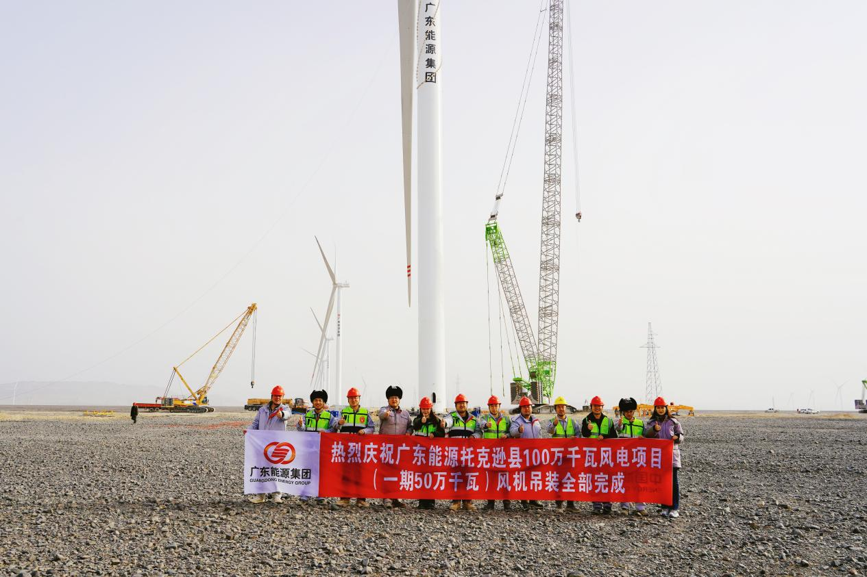 2月25日,新疆吐鲁番——随着最后一台风机叶轮与机舱精准对接,广东能源集团新疆托克逊100万千瓦(一期50万千瓦)风电项目实现全部吊装。该项目不仅是新疆当前已建设的、最大规模采用10MW陆上风电机组的标杆工程,更以“交付周期不足3个月”的亮眼数据,刷新了当地陆上大兆瓦风电项目建设的效率纪录。