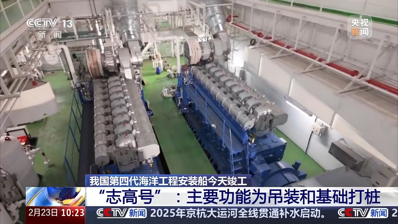 “志高号”的主机舱,它有着4颗强大的心脏,1小时就能发电17000度,能够满足近2000户家庭一天的用电需求,有了它就能满足整艘船全天候高强度的作业。