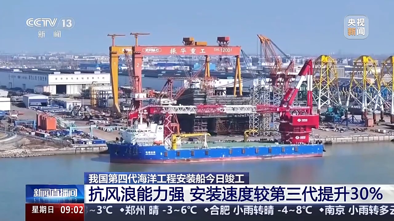 制造这两艘海上风电安装船的江苏南通振华重装码头是国家级海工装备和高科技船舶先进制造业集群所在地,这里的海工装备约占国内市场1/4,船舶制造业规模居国内第一。