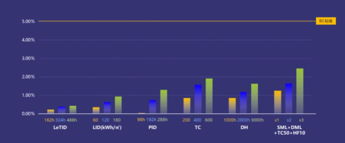 在IEC标准的各项常规与加严测试中,晶澳沙漠光伏组件方案均表现优异,顺利通过三倍加严LeTID/冷热循环/机械载荷测试,意味着该方案能够应对温度高、温差大、多飓风的沙漠环境。
