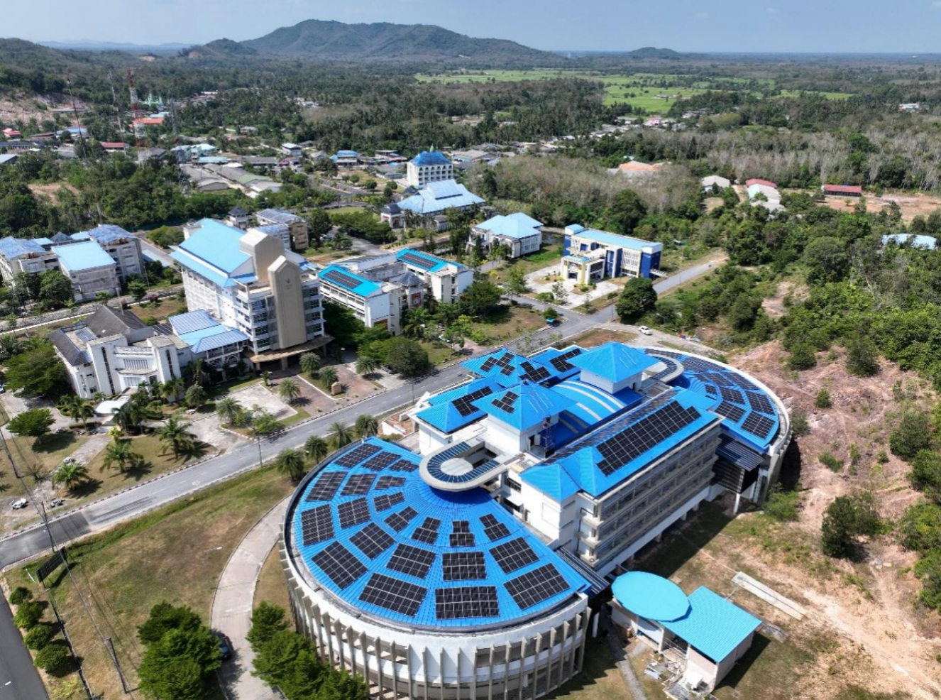 学校屋顶上一排排隆基Hi-MO X6组件成为泰国法塔尼大学践行绿色校园理念的生动注脚