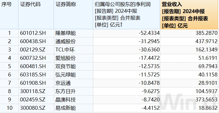 今年以来光伏晶硅产业链价格大幅下跌,隆基绿能(601012.SH)上半年净亏损52.43亿元,亏损规模暂居行业第一;通威股份(600438.SH)录得上市以来首亏,净亏损31.3亿元。另外,同日晚间发布中报的爱旭股份(600732.SH)净亏损17.44亿元,不仅一把亏光了2023年全部盈利(7.57亿元),还倒赔近10亿元;