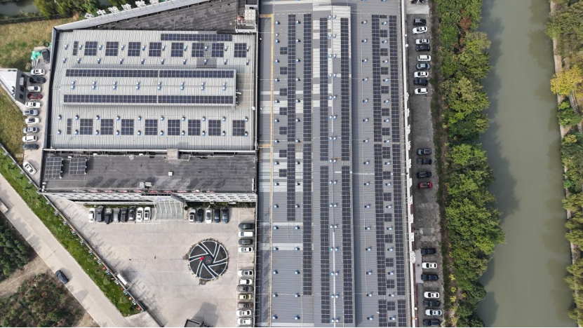 在宁波精乐汽车部件有限公司生产车间,机声隆隆,一派热火朝天的繁忙景象;厂房屋顶,整齐排布的光伏组件在阳光照射下熠熠生辉。在这里,生产零部件所用电能有80%来自屋顶光伏发出的绿色电力。