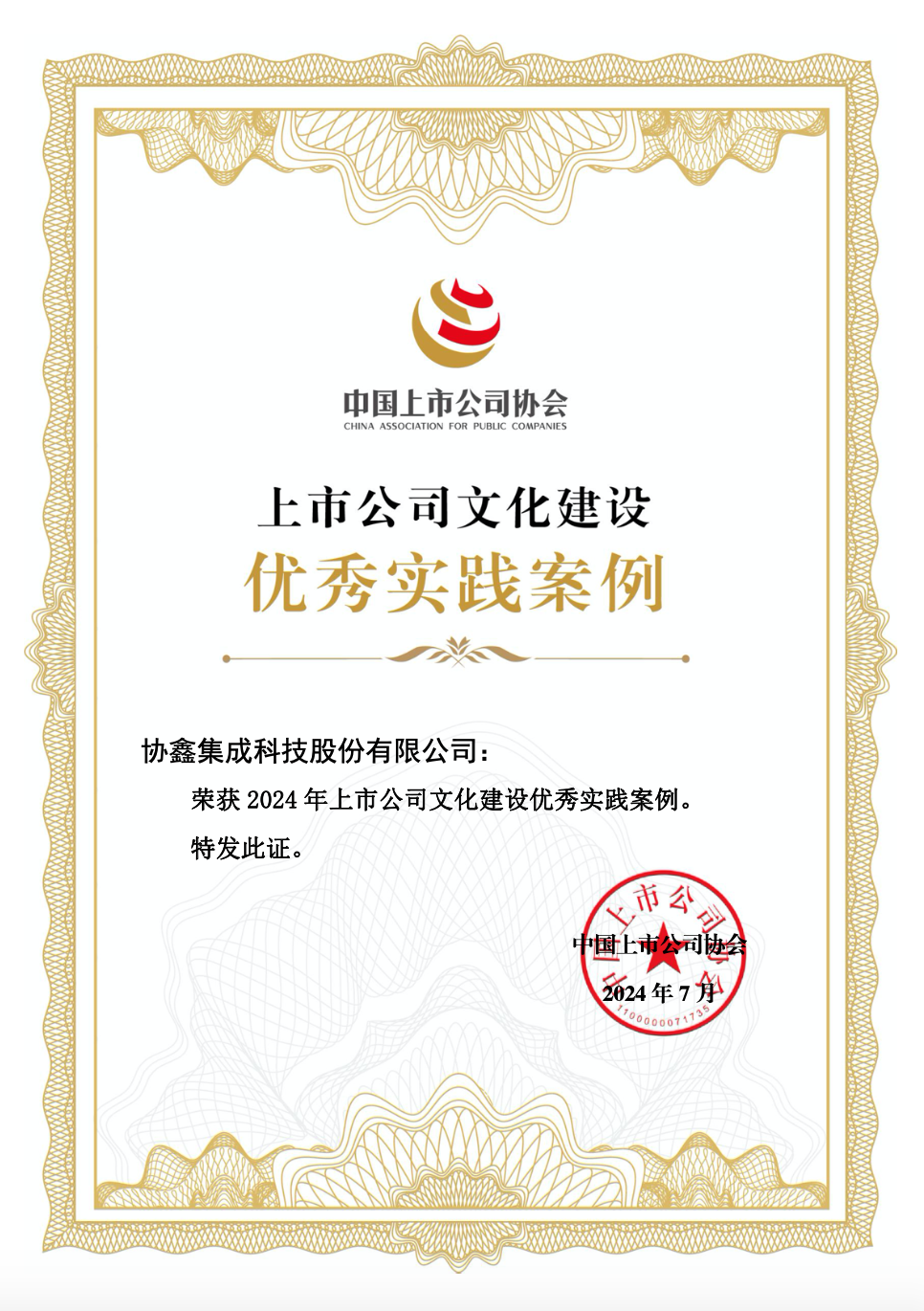 近日,由中国上市公司协会组织评选的“上市公司文化建设最佳实践案例征集活动”结果揭晓,协鑫集成科技股份有限公司凭 借在企业文化建设方面的优异表现,在5300家上市公司中脱颖而出,获评2024“上市公司文化建设优秀实践案例”。