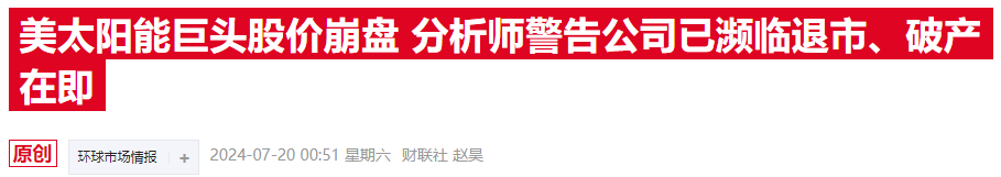 值得一提的是,三周前就有投行获悉,SunPower告诉经销商不再支持新的租赁和购电协议销售,也不支持新项目的安装并停止发货。当时分析师就普遍认为,SunPower已濒临破产。