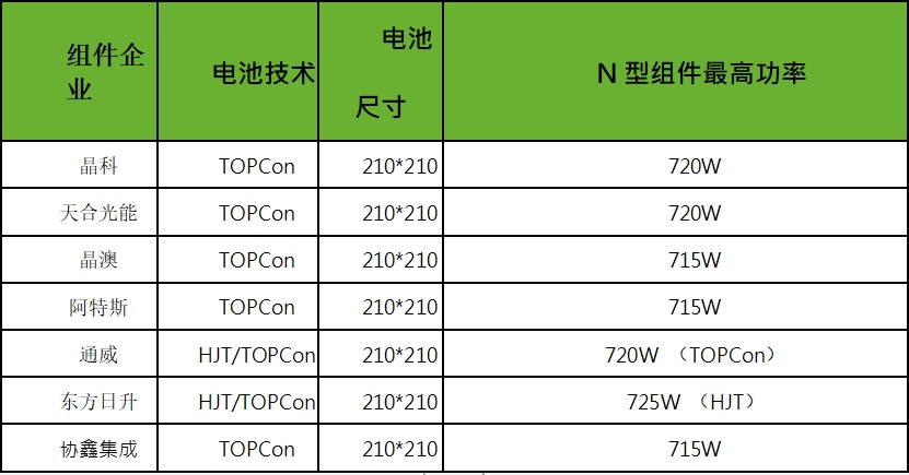 此外,值得关注的是,700W+组件几乎全部采用了210尺寸叠加N型技术,其中TOPCon占比达到50%,光伏行业降本增效已然提速。另据集邦咨询统计,组件出货量前十的企业中,已有7家布局了210+N。