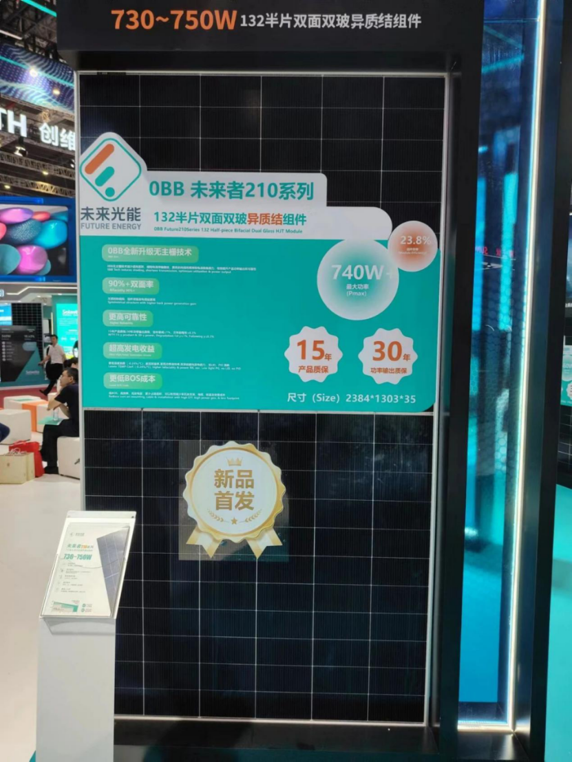 其中,700W+超高功率组件更是燃爆全场,展出700W+的组件厂商多达43家,在主流厂家中的占比近七成。N型700W+组件产品已经成为行业发展的风向标,同时也预示着光伏行业全面迈入PV7.0时代。210R更是一统“矩”势,超七成厂商选择2382mm*1134mm标准版型。