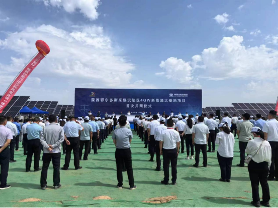 蒙西鄂尔多斯采煤沉陷区4GW新能源大基地项目首次并网仪式现场