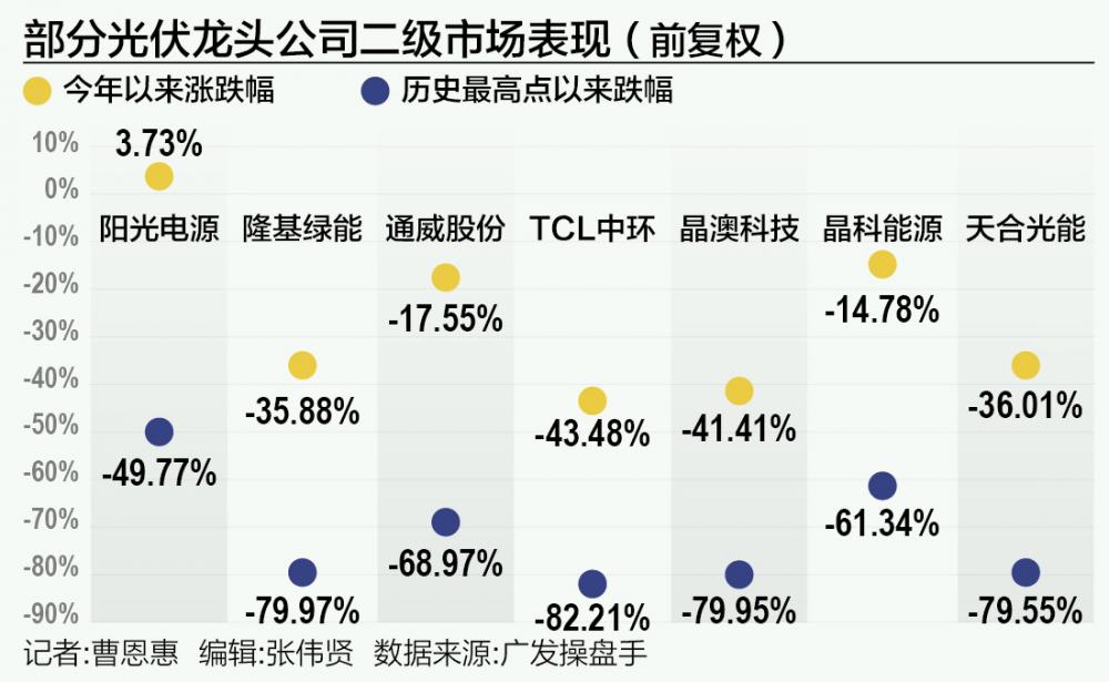 事实上,不仅中小光伏公司目前深陷市值大幅缩水的烦恼,头部光伏企业的估值同样颓靡。