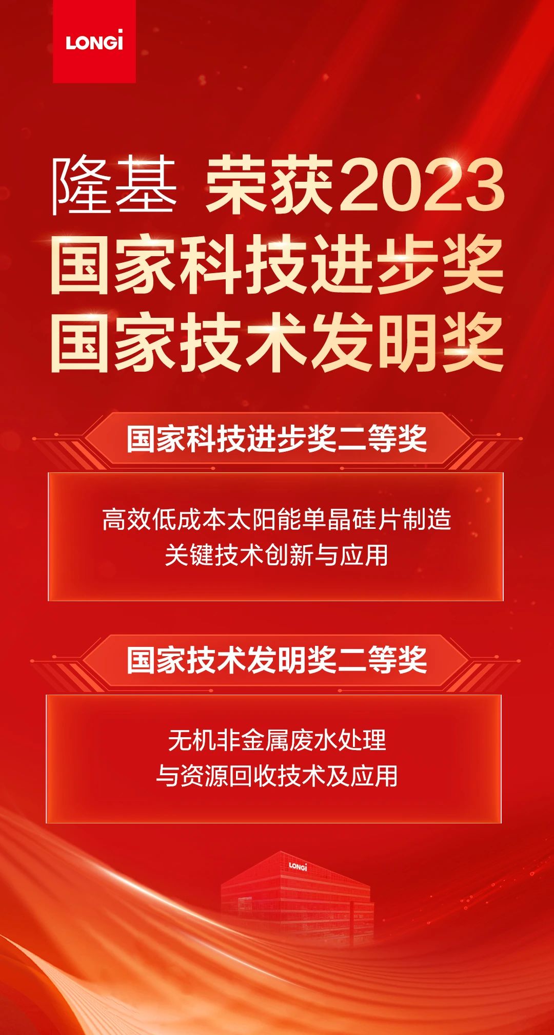 6月24日,全国科技大会、国家科学技术奖励大会、两院院士大会在北京隆重举行。隆基绿能科技股份有限公司(以下简称“隆基”)主持的“高效低成本太阳能单晶硅片制造关键技术创新与应用”项目获国家科学技术进步奖二等奖,隆基参与的“无机非金属废水处理与资源回收技术及应用”项目同时获得国家技术发明奖二等奖。
