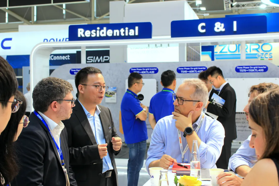 在工商业解决方案中,产品具备智能控制策略,提升发电收益;智能拉弧检测技术有效降低屋顶完全隐患;智能无功补偿,节约无功设备成本,同时避免因功率因数不达标被考核。IP66防护+C5防腐,提升设备可靠运行能力,完美适配工商业应用场景,吸引了众多参会者驻足观看和询问。