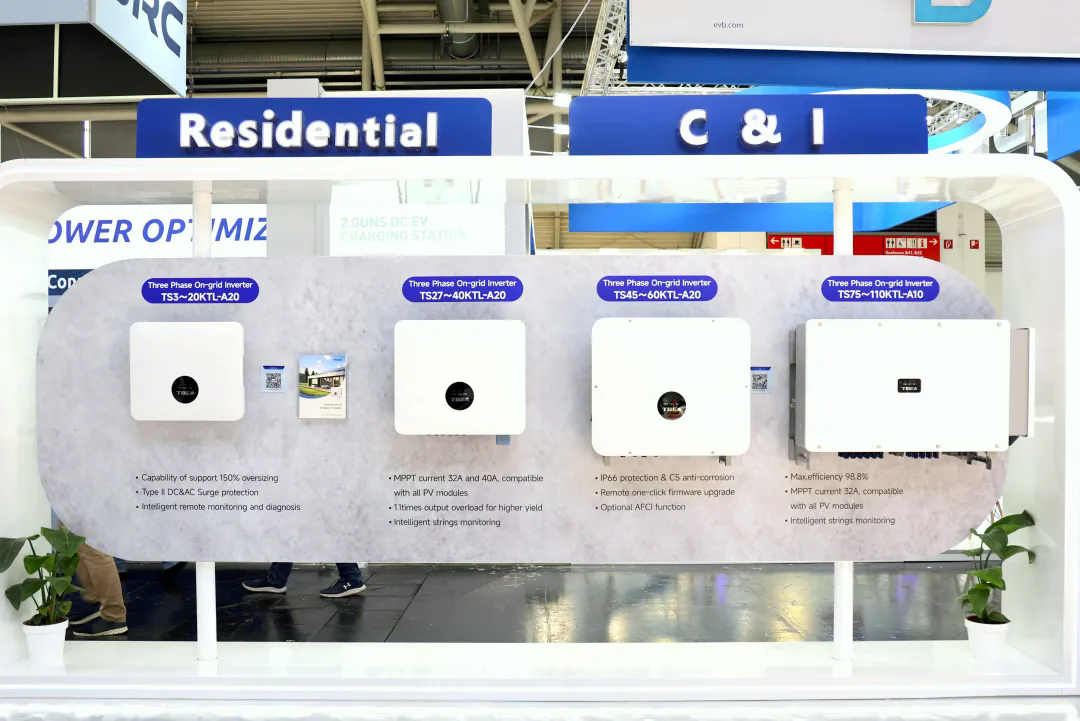 为满足欧洲日益增长的户用和工商业场景需求,特变电工新能源借此展会隆重展出3kW-110kW全系列户用工商业逆变器,充分展示全场景深度布局,满足客户多方位需求。