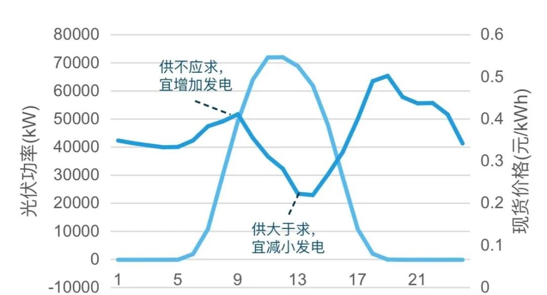 尽管截至2023年底,全国发电装机容量达到29.2亿千瓦,同比增长13.9%。但结合实际的现货市场典型运行曲线来看,在大比例光伏项目的出力特性和负荷需求特性的综合影响下,整体电价曲线呈现为“鸭形曲线”——中午时段较低,早晚时段高。而到2030年新能源发电项目将全部进入电力现货市场,如果这一情况仍在延续,现货市场中光伏发电项目收益便具有下降的风险。