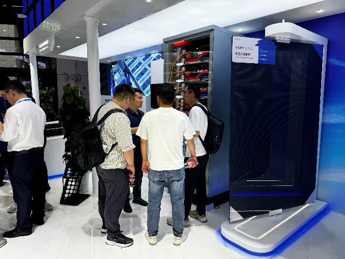 作为全球领先的光储智慧能源解决方案提供商,天合光能展示的全场景化解决方案成为现场焦点,引起了现场观众的热烈关注。以大型地面电站的场景为例,至尊N型720W系列和至尊N型625W系列组件具备高功率性能;与之完美适配的开拓者跟踪支架具备设计灵活、快速安装、更易运维、更低发电损失等优势;5MWh新一代柔性液冷电池舱Elementa金刚2搭载314Ah自研天合芯,并于Q2实现全面量产并全球交付,这也是行业为数不多正式交付的5MWh产品。在工商业场景下,本次天合重磅推出全球多元场景的一站式工商业光储融合解决方案。天合光能组件+支架+储能产品强强联合,为终端客户带来更高的发电收益、更低的BOS成本及度电成本。