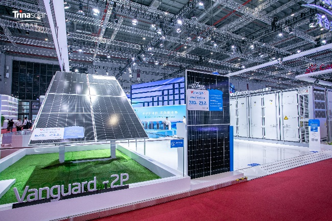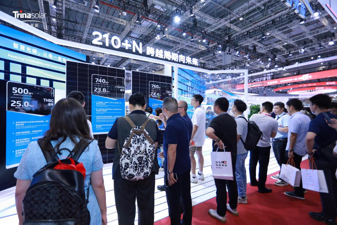天合光能持续以领先的技术走在光伏行业前沿,在多技术路线均有深厚的技术储备。作为210产品技术平台和N型i—TOPCon技术的开拓者,一路引领行业实现了从500W到600W再到700W里程碑式的功率跨越;天合光能多次打破世界记录,4月底,其210+N型i—TOPCon光伏组件最高输出功率达740.6W,第26次创造了世界记录。本次展台“210+N创新展区”左侧,除了该款组件,其自主研发的TSHJ异质结电池和THBC背接触异质结电池技术也亮相展会,最高组件输出功率达760W+。