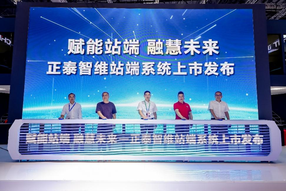 浙江正泰新能源开发有限公司总裁金建波、正泰智维副总经理李振明、广西民海能源有限公司董事长迟敬民、甘肃能源研究所国际工程项目部副部长何炜、中节能太阳能科技(镇江)有限公司首席信息官李宁共同上台完成智能站端系统的发布仪式。