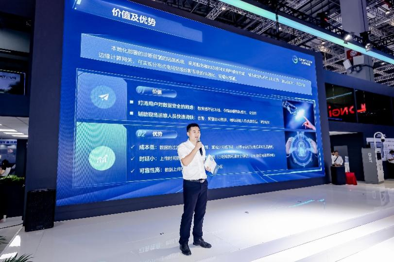 正泰智维平台中心总监张天文则详细介绍了智能站端系统的功能价值、系统亮点、应用场景。智能站端系统通过边缘计算,能够进行组件清洗预警、组件热斑识别等业务问题的快速诊断,指导运维人员对电站实施针对性的运维,帮助电站实现“少人值班”。在将数据资源化、资产化的同时,智能站端系统的一大亮点是将数据留存在本地,最大程度保障电站数据的私密性与安全性。