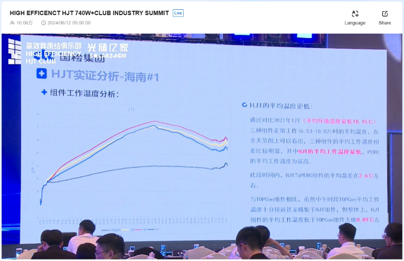 6月12日,“异在当下,未来已来|高效异质结HJT740W+俱乐部产业峰会”作为740W+俱乐部的第四次聚会,由轮值主席国晟科技委托,高效异质结HJT740W+俱乐部主办,SOLARZOOM承办,欲集结领域内所有异质结重点企业,围绕异质结降本增效路线、实证电站数据、异质结电池检测标准及叠层技术等相关热点话题展开深入探讨。