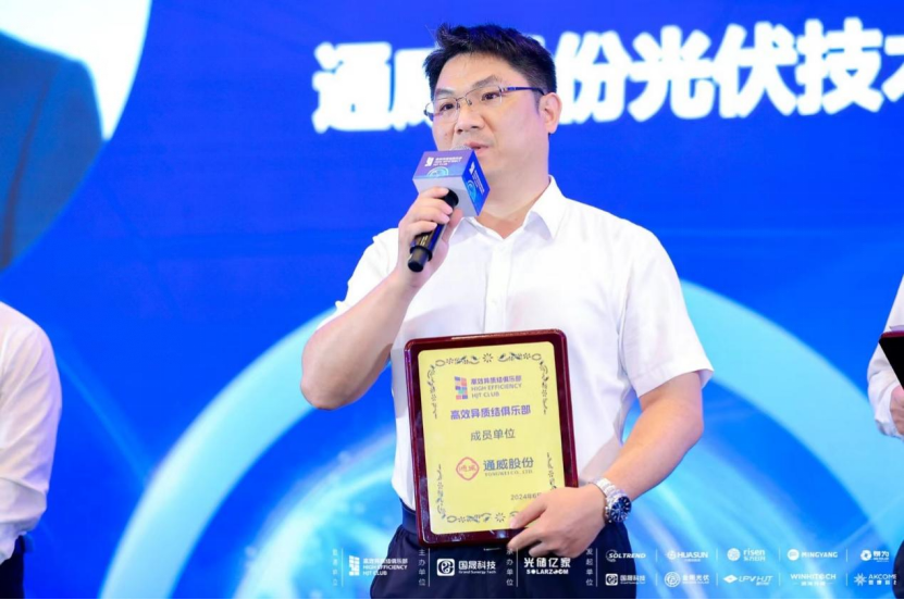 会议的高潮出现在新成员入会环节。在鸿钧、中建材浚鑫、上海电气恒羲之后,龙头通威也通过申请,正式加入高效异质结俱乐部,成为740W+俱乐部的一员。通威光伏研究院院长蒋方丹在入会仪式上表示,通威作为全球高纯晶硅和太阳能电池龙头企业,一直致力于高效异质结电池技术的开发,在过去几年连续8次刷新2384*1303版型的异质结组件功率世界纪录,如今最新纪录765.18W正是通威在5月29日发布在异质结组件上得以实现。加入俱乐部,通威希望与各成员深入交流行业经验,助力异质结技术取得创新突破。