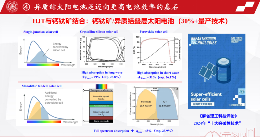 上海交通大学教授、博士生导师沈文忠教授在《为什么选择晶硅异质结太阳电池技术》的主题发言中,详细对比了HJT和主流TOPCon技术的各项指征,指出“异质结电池技术是迈向更高电池效率的基石”。