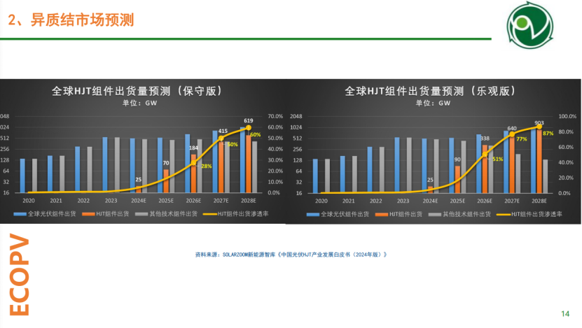 在演讲环节,中国绿色供应链联盟光伏专委会秘书长、中国科学院电工研究所高级工程师、国际能源署IEA PVPS副主席吕芳为峰会致辞,她在演讲中援引SOLARZOOM智库表示,2028年异质结组件出货渗透率保守估计将达到60%,与之相应的异质结全球组件出货达到619GW,而乐观估计这个数字将达到惊人的903GW。