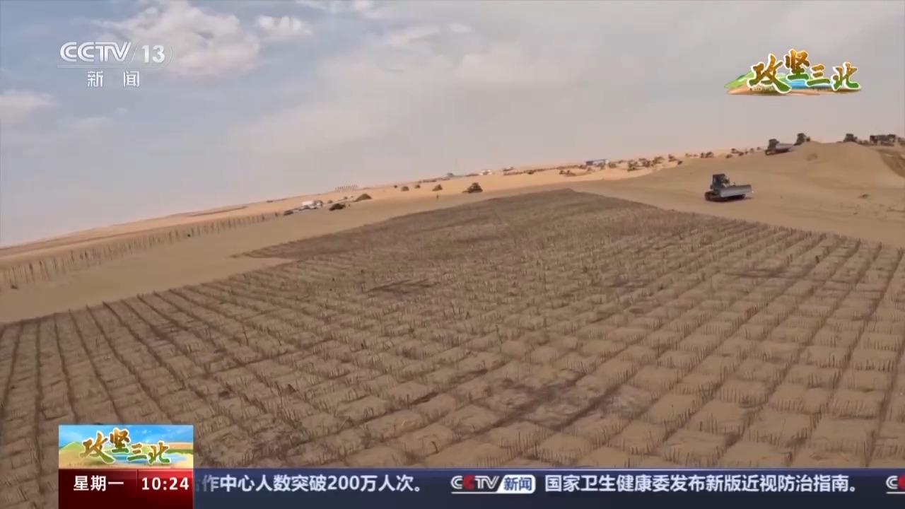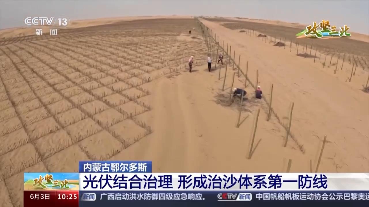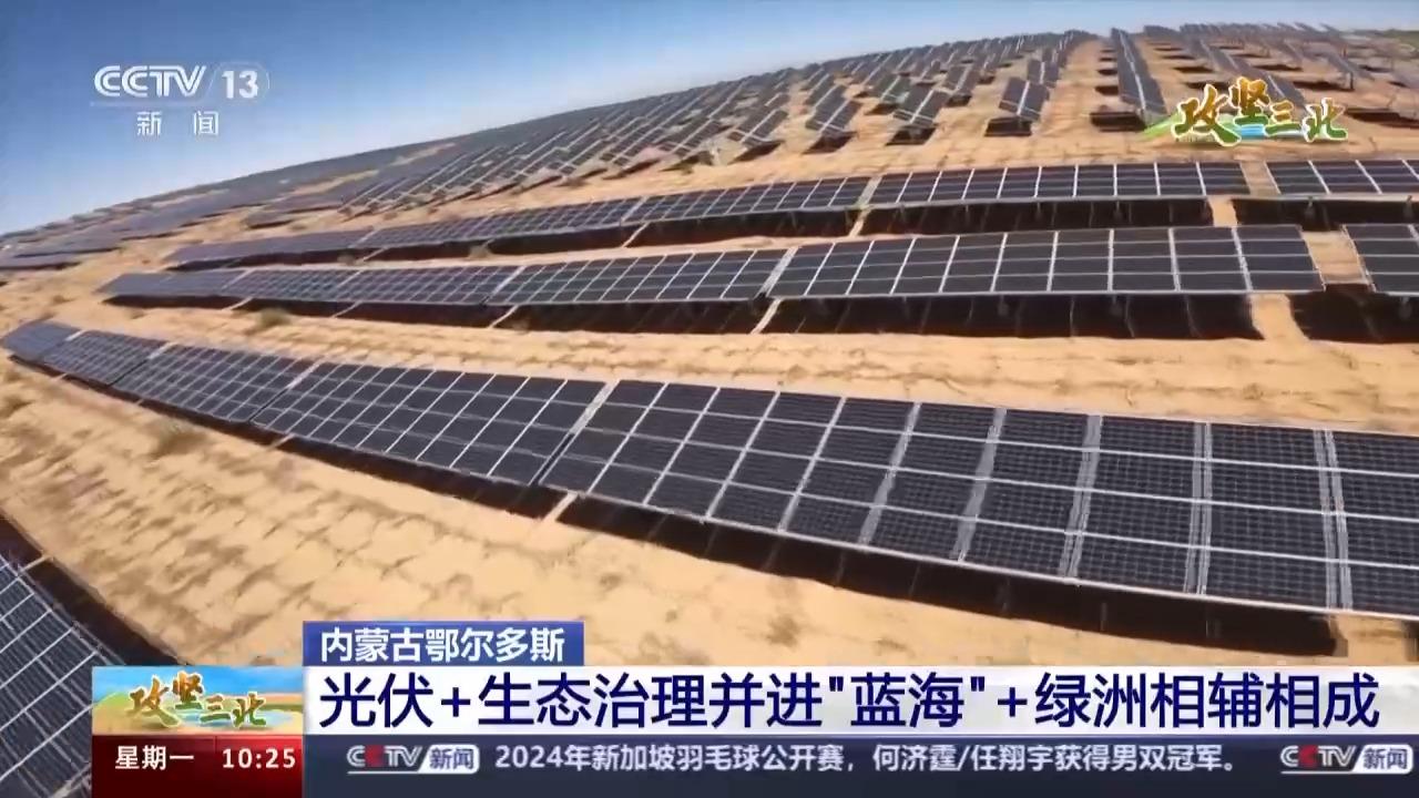 眼下,“三北”工程已进入六期工程的建设阶段。在内蒙古鄂尔多斯市杭锦旗库布其沙漠腹地的朔方新能源大基地,当地正在探索最新的光伏治沙模式。