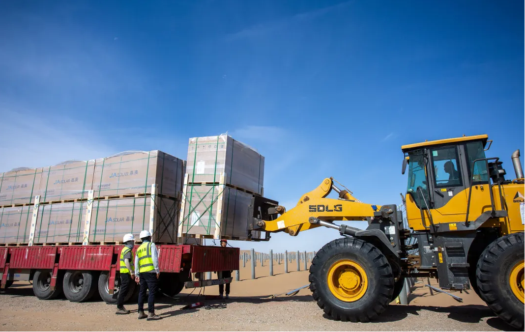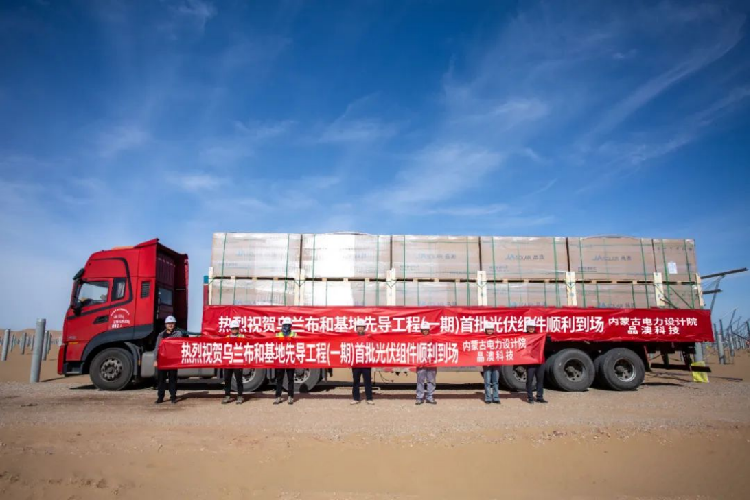 在此基础上,针对100万千瓦大基地先导工程,晶澳科技以“五星服务”为标准,积极响应配合客户的需求,从合同签订到发货速度,从客户问题的解答到相关接洽,事事争做第一,力保项目如期施工、如期并网,受到了内蒙古能源集团及总包方内蒙古电力勘测设计院的高度评价。如今首批组件如约到场,将对项目的建设进度提供有力支持。