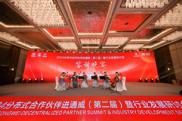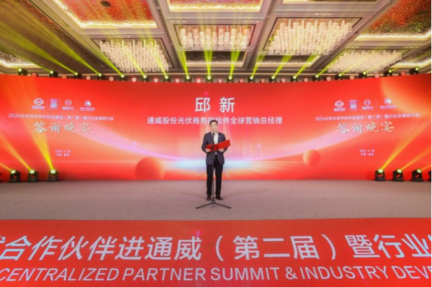 大会期间还举行了答谢晚宴,通威股份光伏商务部组件全球营销总经理邱新致答谢辞。他表示,在研发能力与生产能力的加持下,通威组件已经实现了功率与成本的双重突破,全面迈进了大尺寸、高功率的700W+时代。不论市场如何变化,通威始终坚信产品价值第一位,优质的产品和服务永远是良性合作的基础。如今,光伏行业正迎来组件功率大提升和产品价值深度发展的时代。作为时代的亲历者和建设者,通威愿与广大合作伙伴携手前行,坚定拥抱变化、共享价值,共同谱写更加美好的发展篇章。